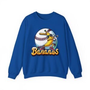 Banana baseball sweatshirt style for fans who want warmth, humor, and team spirit in one. This playful mascot crewneck features a bold banana swinging a bat in front of a baseball backdrop, making it the perfect conversation starter at chilly ballgames, backyard practices, or casual weekends. Whether you’re a lifelong baseball fan or just someone who loves a quirky twist on gameday fashion, this banana baseball sweatshirt keeps you cozy and stylish from first pitch to last inning.
